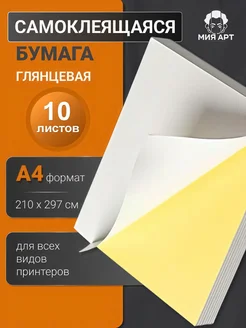 Самоклеящаяся бумага цельная А4 белая глянцевая 10 листов
