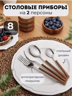 Набор столовых приборов с деревянной ручкой
