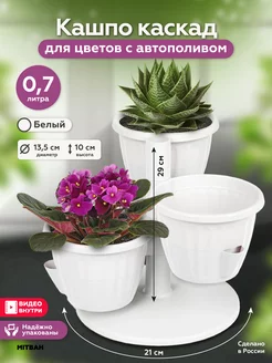 Кашпо каскад ярусный горшок для цветов 3 шт 0,7 л