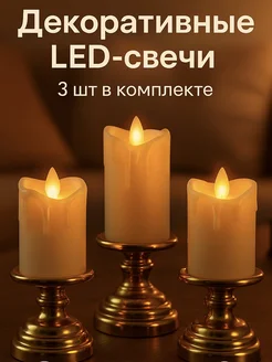 Свечи светодиодные на батарейках на подставке LED 3 шт