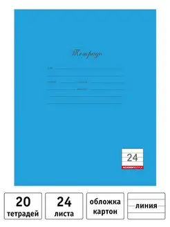 Тетрадь 24 л клетка картонная обложка 20 шт