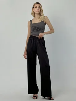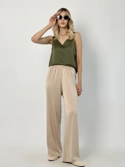Брюки шелковые на резинке палаццо