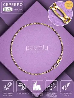 Браслет серебро позолоченное 925, Комбинированная 1х1