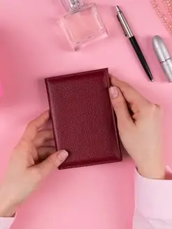 Кожаная обложка для автодокументов бордовая