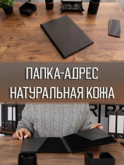 Папка на подпись кожаная с карманами чёрная