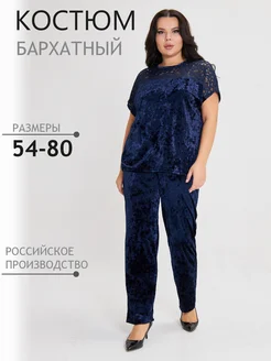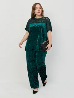 Велюровый брючный костюм с кружевом