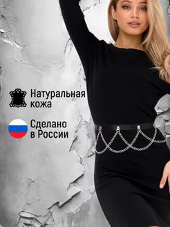 Пояс для платья с цепями кожаный