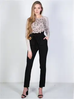 Брюки офисные с завышенной талией и поясом