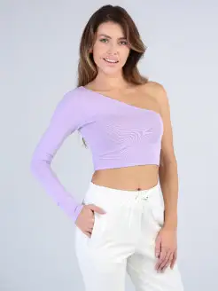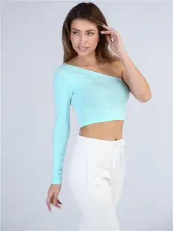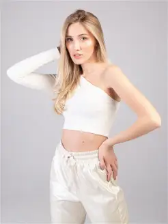 Топ на одно плечо укороченный с длинным рукавом