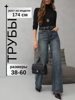 Джинсы широкие трубы с высокой посадкой