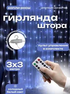 Гирлянда штора 3х3 белая новогодняя занавес на окно