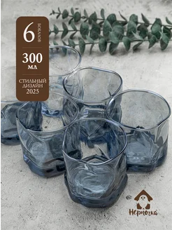Набор изогнутых бокалов для виски, голубой, 300 мл, 6 шт