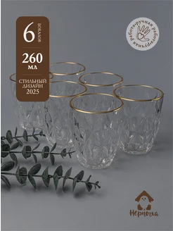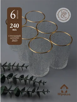 Набор бокалов с узором, 240 мл. 6 шт. С золотой каймой