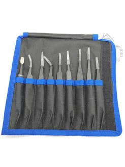 Набор антистатических пинцетов ESD, сталь 1,5мм, 9шт