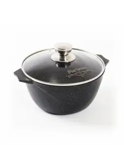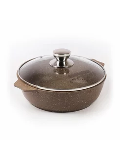 Жаровня коричневая 4 л из литогоалюминия со стекл.крышкой