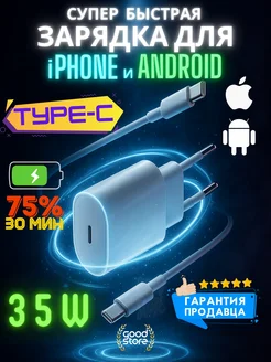 Быстрая зарядка на Андроид и iPhone 15 16 блок type-c и шнур