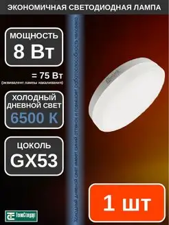 Лампа светодиодная LED GX53 8Вт 6500К 1шт