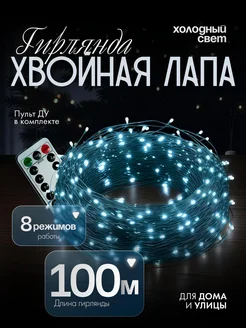 Гирлянда роса мишура хвойная лапа 100м холодный свет