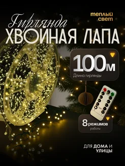 Гирлянда роса мишура хвойная лапа 100м теплый свет