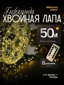 Гирлянда роса мишура хвойная лапа 50м теплый свет