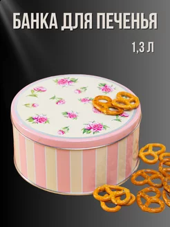 Жестяная банка для печенья и конфет Пион розовый 1,3л