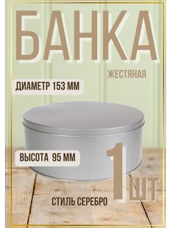 Шкатулка металл для хранения печенья банка 1,66 л Серебряная