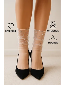 Прозрачные нарядные носочки для девочек из фатина с бусинами