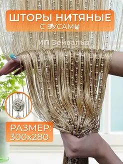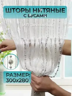 Нитяные шторы Кисея с бусами тюль на кухню стеклярус 3 м