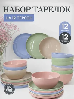 Набор тарелок глубоких и плоских пластиковых на 12 персон