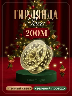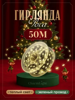 Гирлянда светодиодная Роса нить 50 м желтый теплый