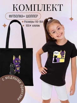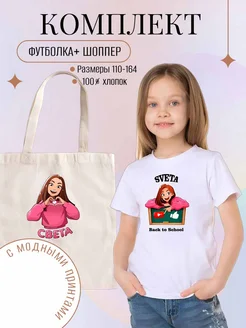 Комплект Футболка и шоппер с модным принтом Мерч Света Кемер