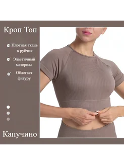 Кроп топ лонгслив в рубчик спортивный укороченный