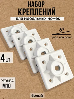 Крепления для мебельных ножек, белый, угол наклона 6°, 4 шт