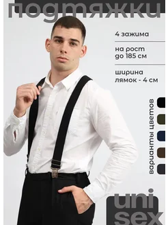 Подтяжки мужские широкие взрослые регулирующиеся, 4 клипсы