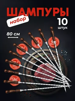 Набор шампуров 10 штук 80 см, деревянная ручка