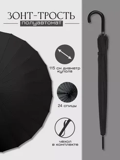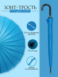 Зонт трость прозрачный с белой кромкой, 16 спиц