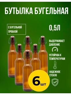 Бутылка бугельная 0 5 л с бугельной пробкой (темная) 6 шт