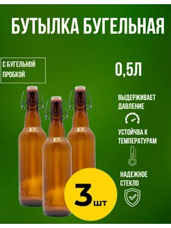 Бутылка бугельная 0 5 л с бугельной пробкой (темная) 3 шт