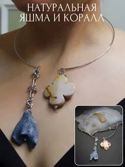 Колье обруч с подвесками из натуральных камней яшма, коралл
