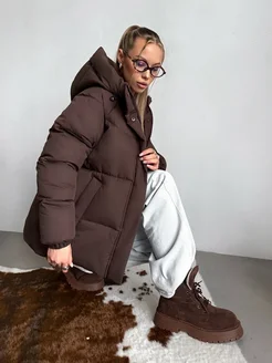 Куртка зимняя длинная с капюшоном утепленная