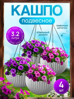 Кашпо подвесное напольное уличное на цепочке 4 штуки 3,2 л