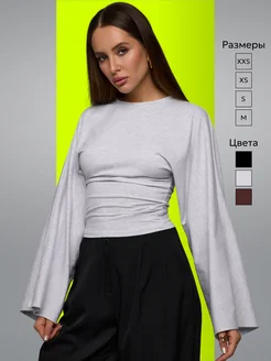 Лонгслив приталенный с широкими рукавами летучая мышь