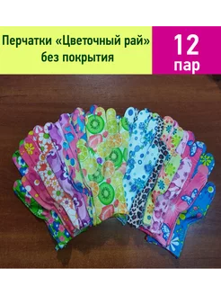Перчатки женские "Цветочный рай" без покрытия "Микс" 12 пар