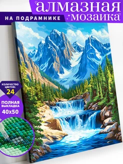 Горный водопад Алмазная мозаика на подрамнике 40х50 см