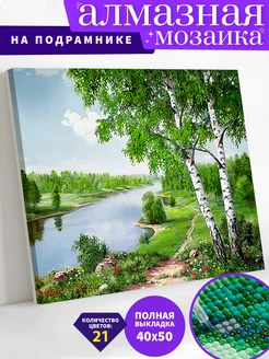 Березы у реки Алмазная мозаика на подрамнике 40х50 см