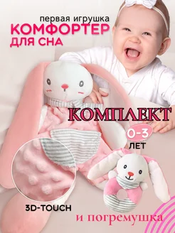 Игрушка погремушка для новорожденного девочки мягкая Зайка