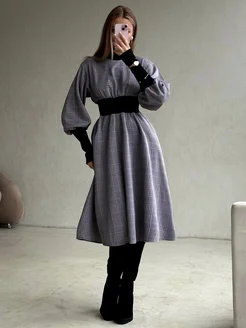 Зимнее теплое платье в клетку трикотажное
