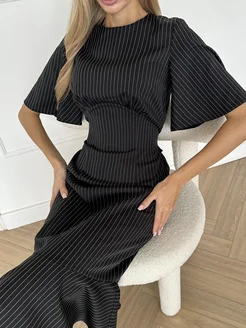 Платье офисное школьное футляр длинное в полоску
