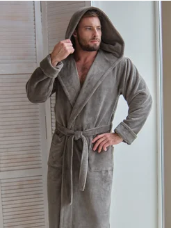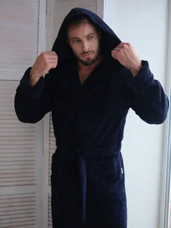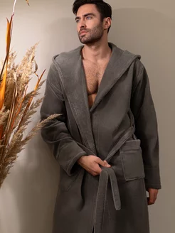 Халат махровый с капюшоном длинный с запахом AMAZONKA
