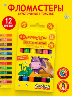 Фломастеры двусторонние 6 штук и 12 цветов толстые